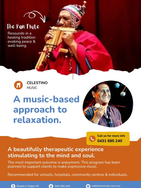 Mario Celestino’s mission is to take the audience on a musical and spiritual journey that connects them to his South American heritage. Having travelled Australia widely, played in festivals on the three continents and studied jazz improvisation, Mario Celestino carries many influences with which the audiences connect, fusing elements of modern jazz, funk, Latin and rock music, along with the richness of his Indigenous Andean heritage. He performs as a solo,duo, trio artist and with a five-piece ensemble of musicians called Celestino Fusion that incorporates his unique traditional Bolivian sound (sikus) panpipes, quenas (flutes) and charango (string instrument) with modern technology to create memorable musical performances.